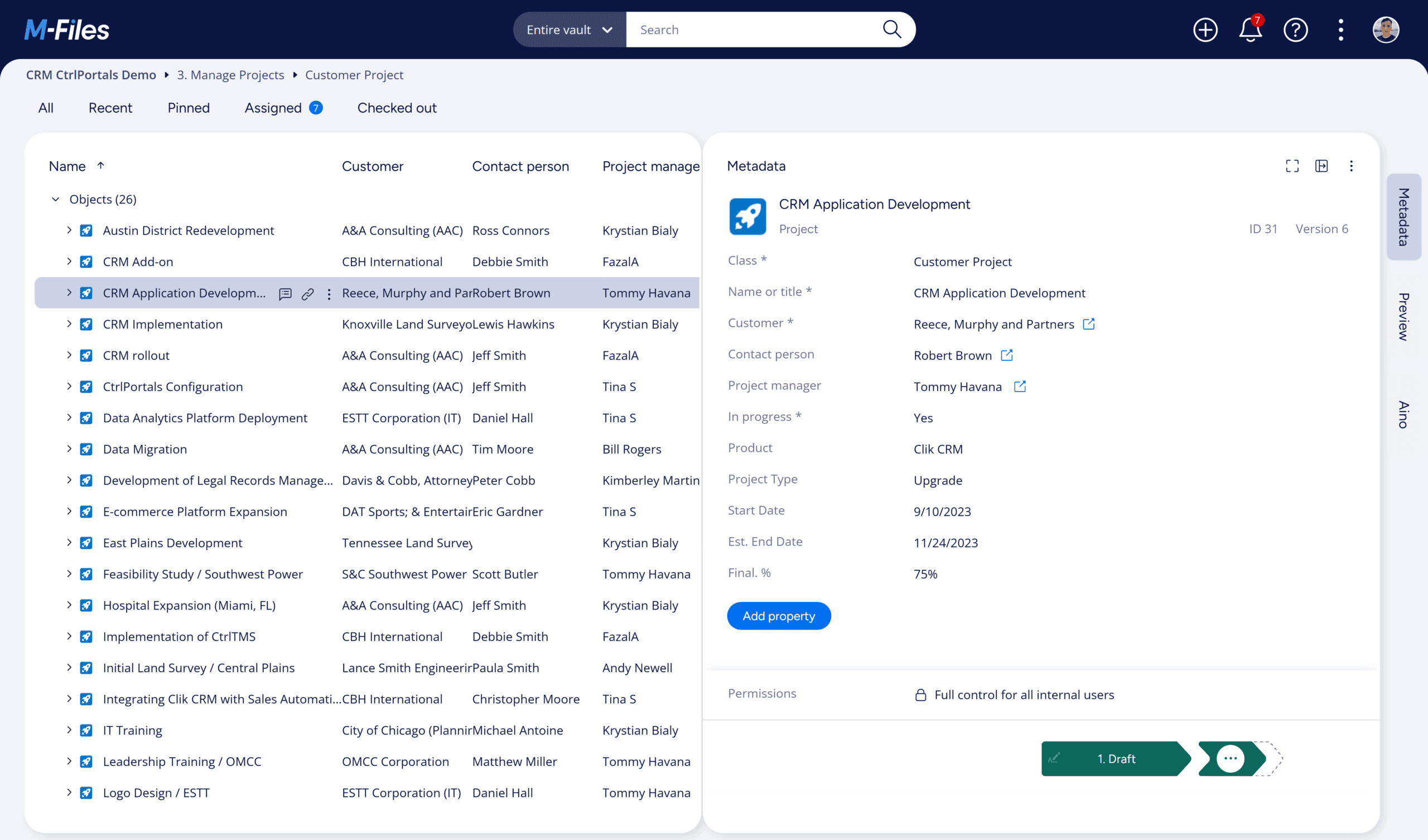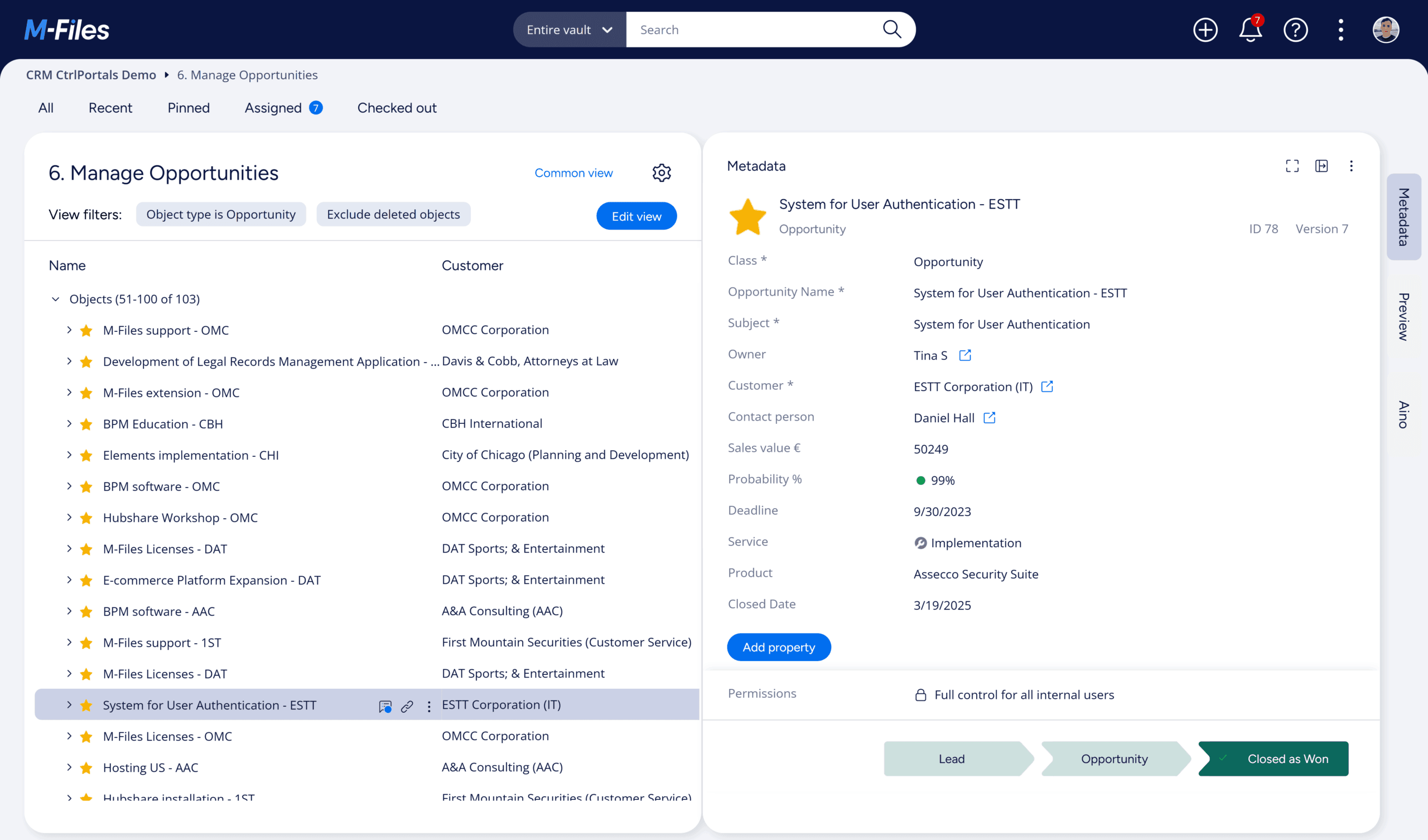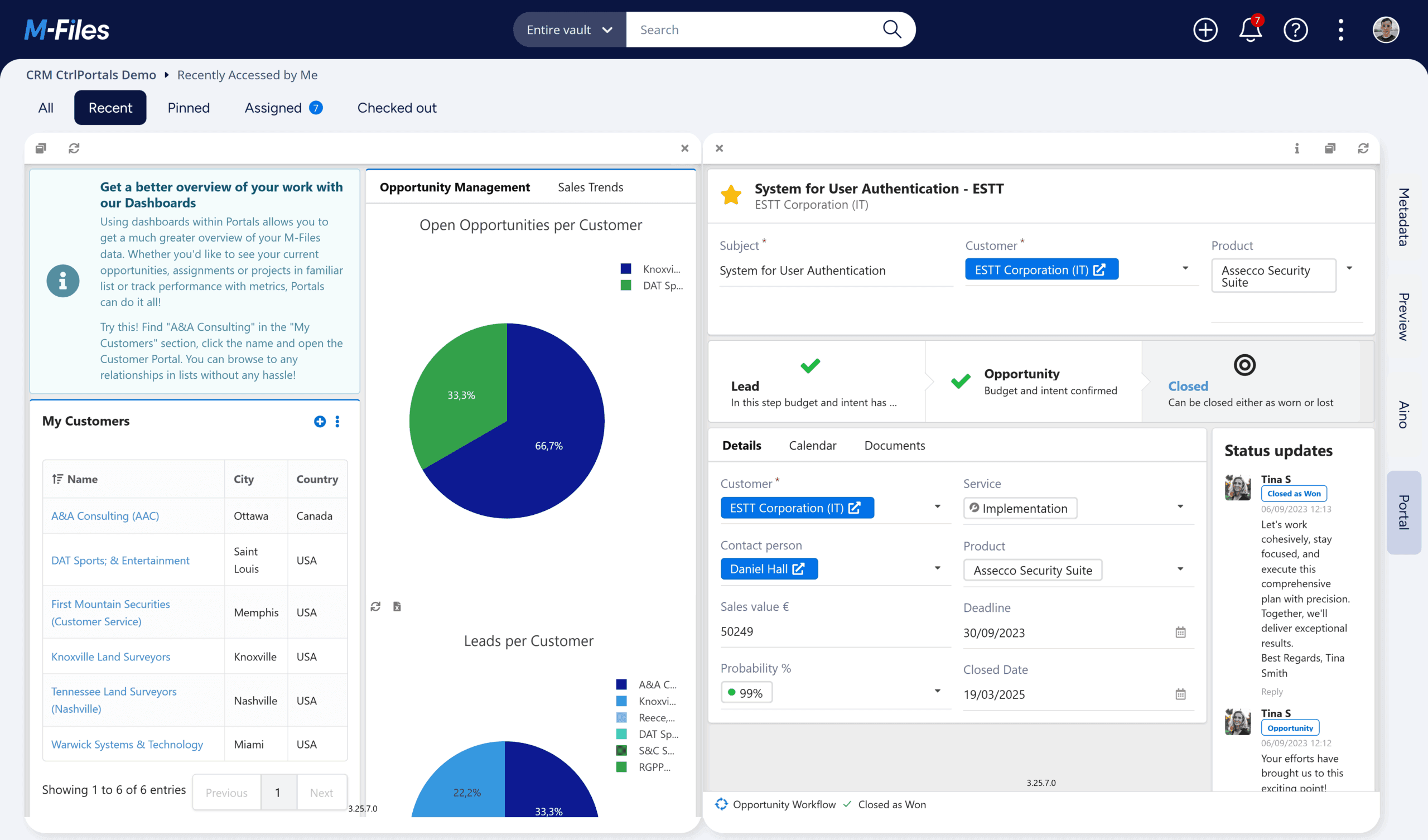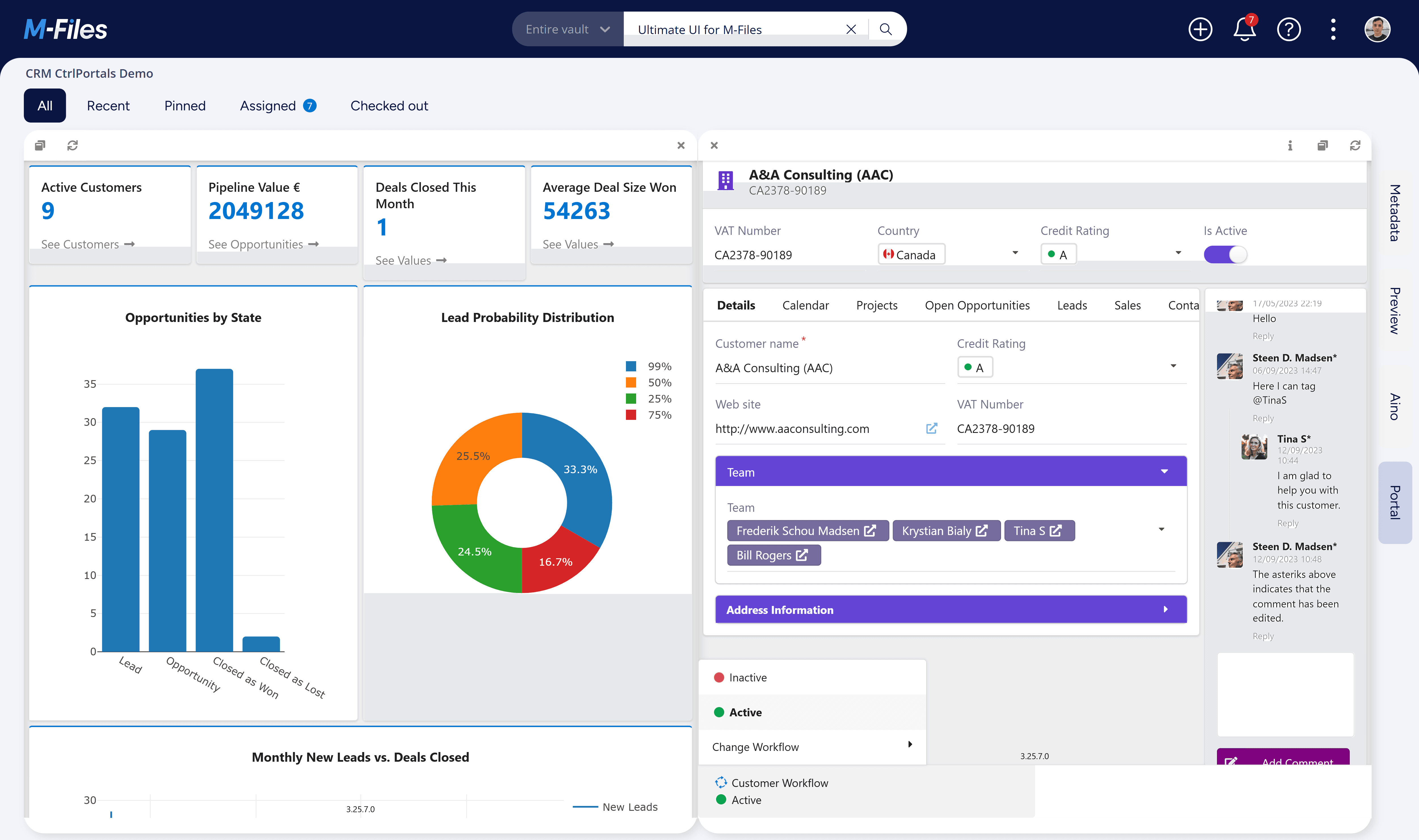 CtrlPortals gives you the ultimate control and flexibility over your M-Files Vault. Its user-friendly interface lets you access all the information that you need about any Object such as a Customer, Project, Opportunity, or Product. Organize your workspace so that you can easily switch between different Tabs, each with its own layout and content.